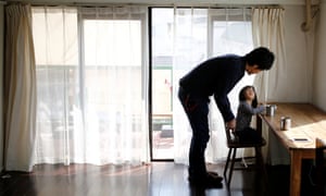 Minimalist Naoki Numahata talks to his two-and-a-half-year-old daughter, Ei, in their living-room in Tokyo. Photograph: Thomas Peter/Reuters