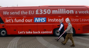 The Vote Leave campaign bus, featuring a widely disputed claim about UK contributions to the EU. Photograph: Stefan Rousseau/PA