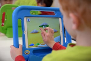 A boy plays on an iPad at an early-learning centre. The idea of the state and what it provides has been systematically derided. Photograph: Lukas Coch/AAP