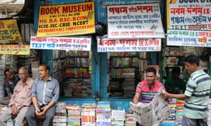 Men at stalls selling schoolbooks on College Road in Kolkata at the height of India’s annual exam season Photograph: Michael Safi
