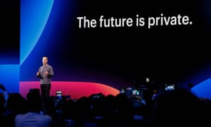 Mark Zuckerberg talking about privacy at a Facebook conference in 2019. Photograph: Amy Osborne/AFP/Getty Images