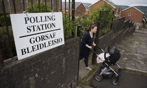 A voter leaves a polling station at the Elim Pentecostal church in Merthyr Tydfil, south Wales. Photograph: Matthew Horwood/Getty Images