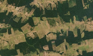 Farms and pastureland carve their way into tropical forestland in the Brazilian state of Rondônia, one of the Amazon’s most deforested regions. Photograph: Planet