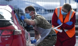 Military personnel help administer Covid-19 tests for NHS workers at Edgbaston cricket ground in Birmingham. Photograph: Jacob King/PA