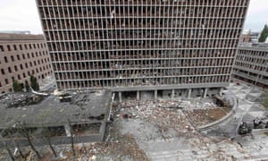 A government building in Oslo bombed by Anders Breivik, July 2011. Photograph: Scanpix/Reuters