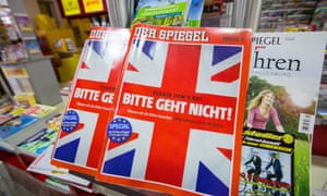 Copies of German magazine Der Spiegel featuring the headline “Please don’t go!” Photograph: Bloomberg/Bloomberg via Getty Images