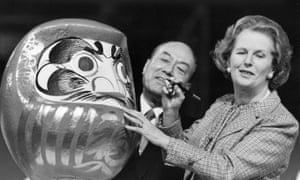 Margaret Thatcher painting the eye of the Daruma doll at the opening of the Nissan plant in 1986. Photograph: Alamy