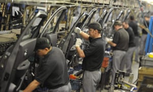 Nissan workers prepare doors for the Qashqai car in Sunderland. Photograph: Reuters