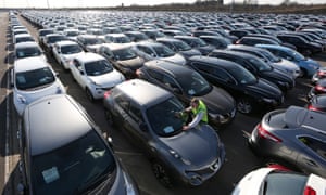 Nissan Qashqais and Leafs being inspected at the port of Tyne before export. Photograph: Bloomberg via Getty
