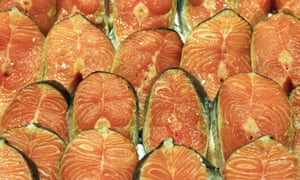 Salmon steaks at a Carrefour supermarket in Calais, France. Photograph: Gary Calton for the Observer