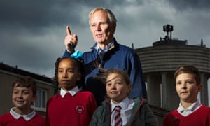 Philip Alston with pupils from Avenue End primary school in Glasgow. Photograph: Murdo MacLeod for the Guardian
