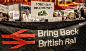 Protesters against Southern Rail in London last month: a 2015 poll revealed nearly 60% of the public supports public ownership of the railways. Photograph: NurPhoto/Getty Images