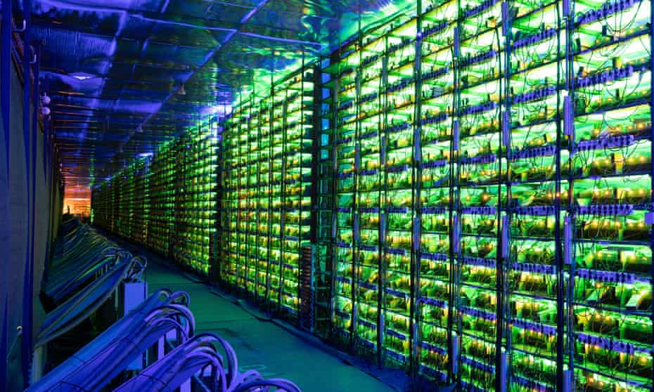 Illuminated rigs at the Minto cryptocurrency mining centre in Nadvoitsy, Russia. Photograph: Andrey Rudakov/Getty Images