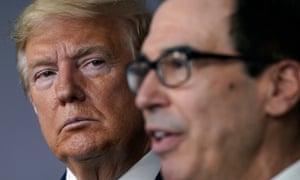 ‘For the time being, politicians are adopting a bipartisan approach to coping with the crisis, and that’s entirely understandable.’ Donald Trump and Steven Mnuchin at a White House press conference on Tuesday. Photograph: Drew Angerer/Getty Images